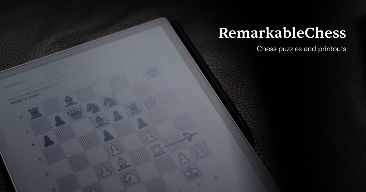 Paste a FEN string from chess.com, Lichess, or any chess tool — download a clean PDF of the position, ready for your reMarkable.